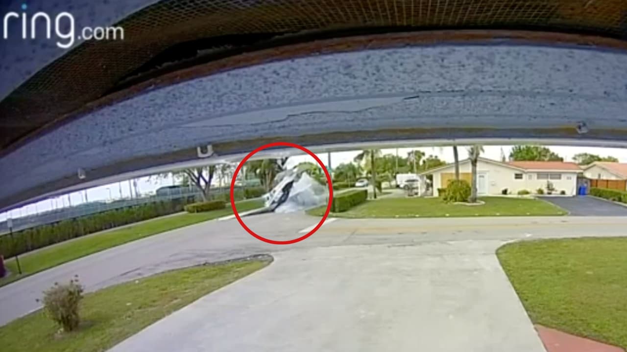 En video: El momento en que una avioneta choca con un auto en Pembroke Pines y se prende en llamas