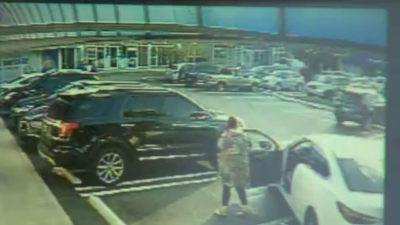 Una cámara de vigilancia muestra cómo el vehículo afectado es completamente empujado por otro auto y la conductora que habría ocasionado el incidente se baja y evalúa la escena unos minutos antes de huir del restaurante The Fish House, en Miami-Dade. Las autoridades están tras la pista de esta mujer y piden ayuda a la comunidad.