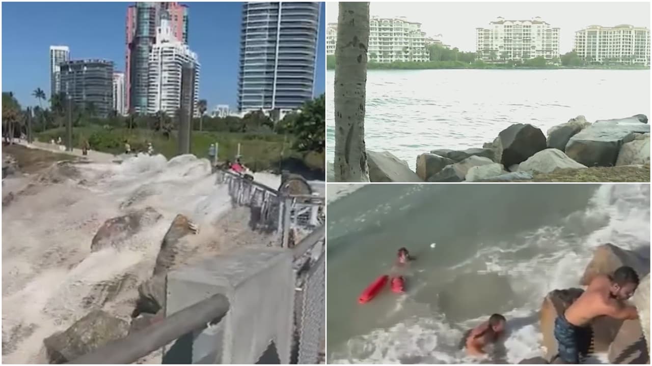 En video: fuerte marejada en Miami Beach arrastra todo a su paso y arroja a decenas de personas