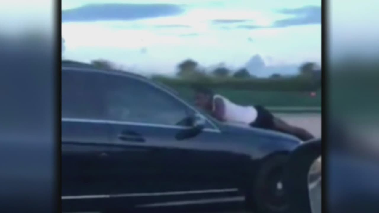 En video: Hombre se agarra del parabrisas de un auto en movimiento a alta velocidad