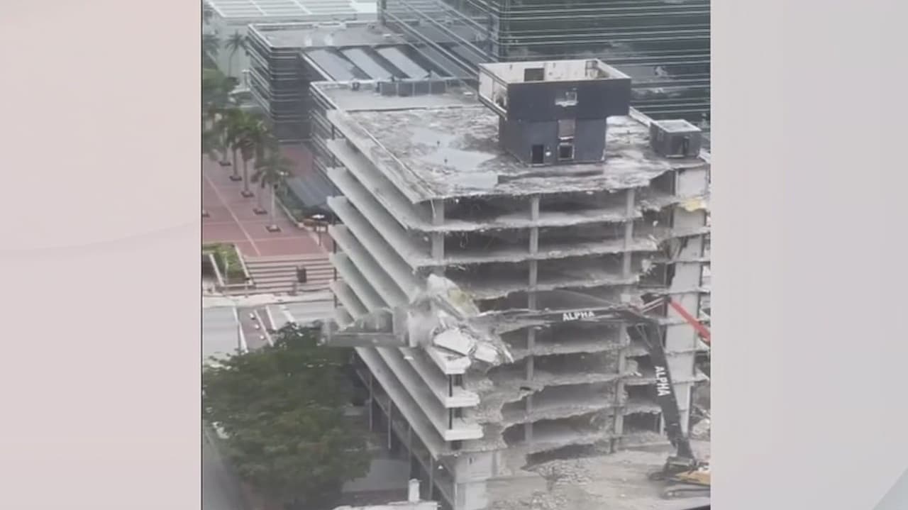 En video: Maniobra fallida durante la demolición de un edificio en Brickell por poco causa una tragedia