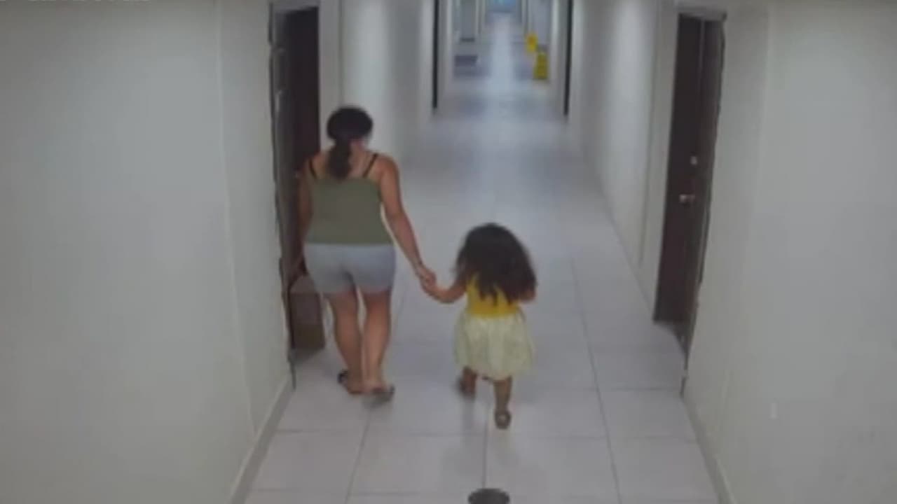 En video: Sospechosa acompañada de una niña roba un paquete de un apartamento en Hialeah