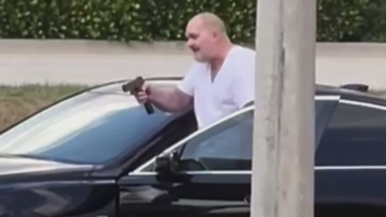 En las imágenes del incidente, que ocurrió en Cooper City, se observa cómo el sujeto amenaza con un arma que parece semiautomática a otro hombre que estaba usando uno de los cajeros de Bank Of America en lo que parece ser un incidente de ira. El sospechoso huyó del lugar, por lo que autoridades están pidiendo cualquier información a la comunidad para poder dar con su paradero.