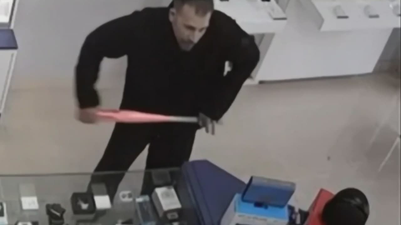 En video: Un hombre amenaza con un bate a la empleada de una tienda de celulares durante un asalto