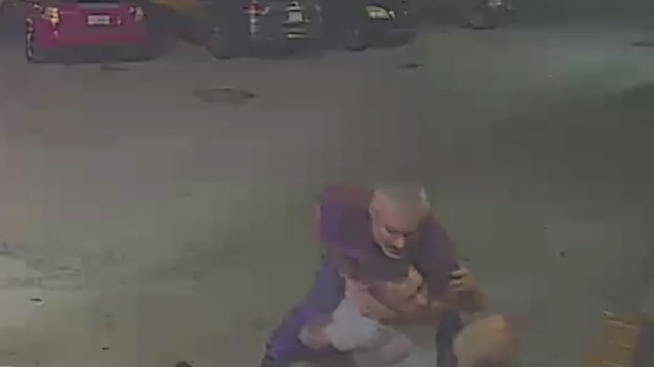 En video: Un hombre con experiencia en lucha libre retiene al sospechoso de provocar un incendio