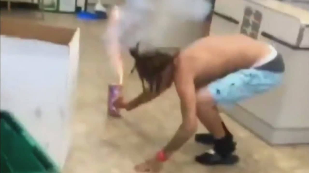 En video: Un hombre enciende fuegos artificiales dentro de una tienda Dollar-Tree