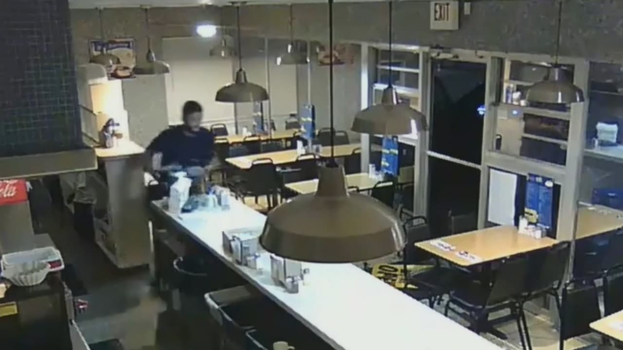 En video: Un hombre rompe la puerta de un restaurante e intenta llevarse la caja registradora