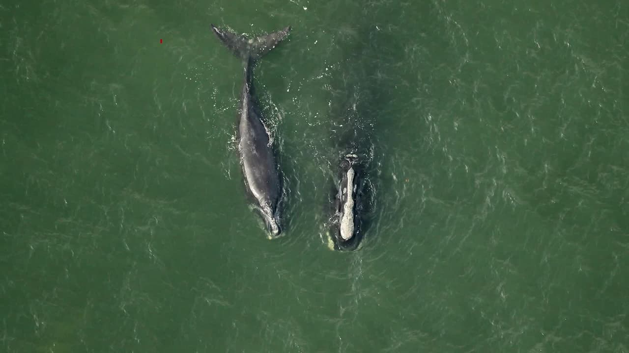 La ballena fue vista con heridas este martes, luego que encontraron muerto a su bebé en la orilla de una playa, el fin de semana pasado. Un bote podría haberlas golpeado.