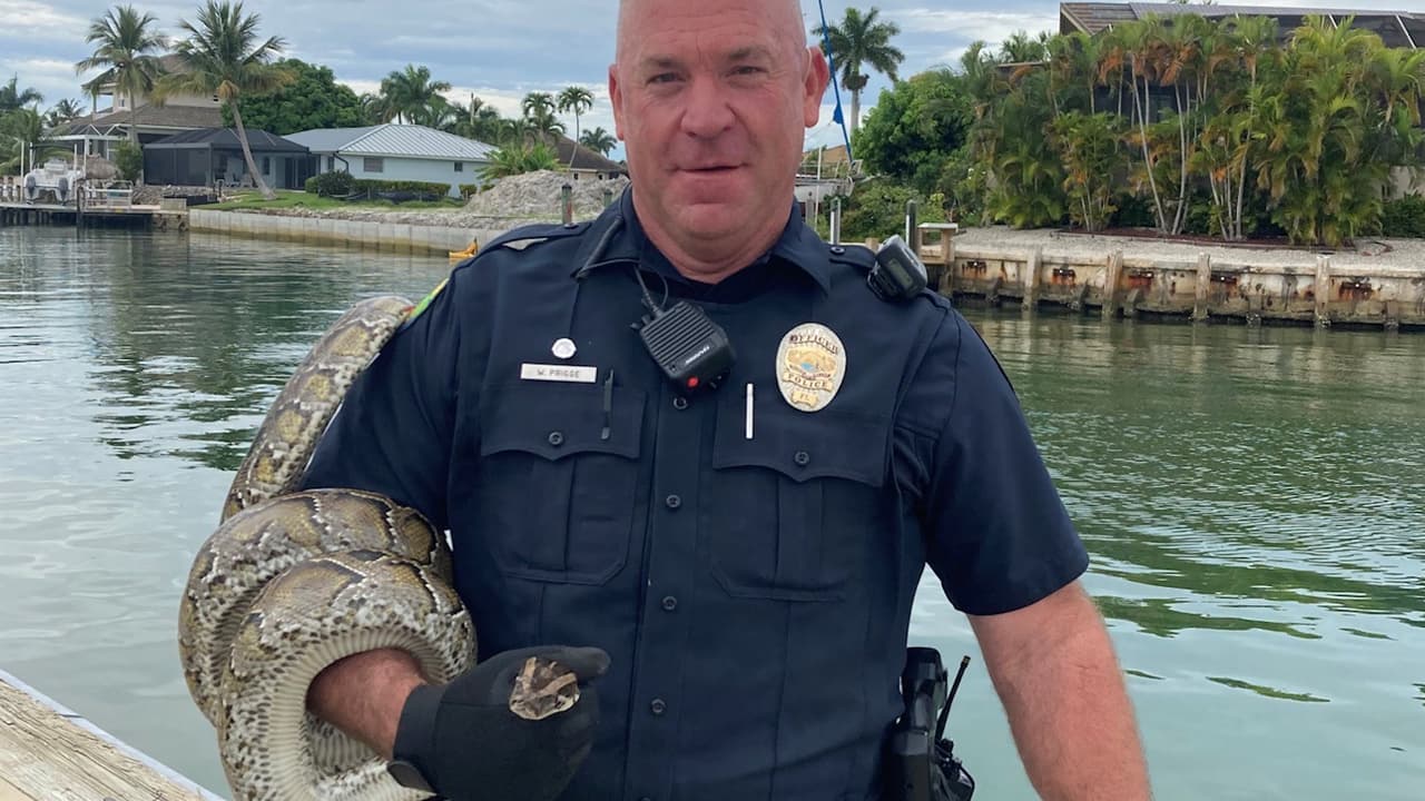 La policía de Marco Island recibió la llamada pidiendo ayuda y cuando llegaron los agentes, uno de ellos capturó al animal.