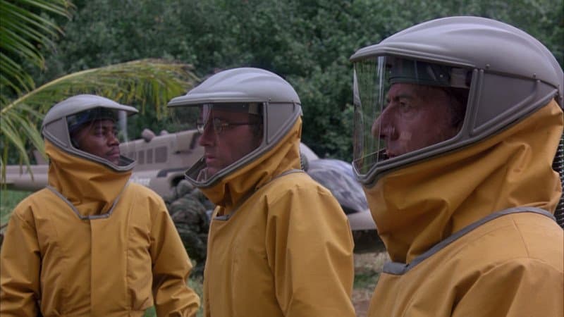 En Outbreak ocurre algo similar a Contagion: el brote de una enfermedad infectada por un mono africano que mata a miles a personas y los protagonistas encuentran la cura rápidamente.