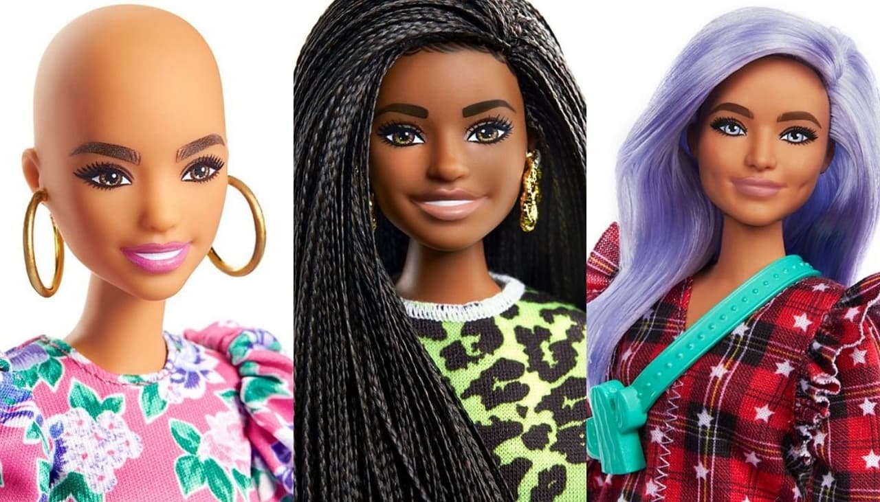 Además, el pelo rubio y lacio que caracterizó a Barbie ya no es el único. Las muñecas de Barbie® Fashionistas™ presumen diferentes peinados que van desde trenzas y afros hasta el cabello teñido en tonos pastel. Incluso existe una que está totalmente rapada.