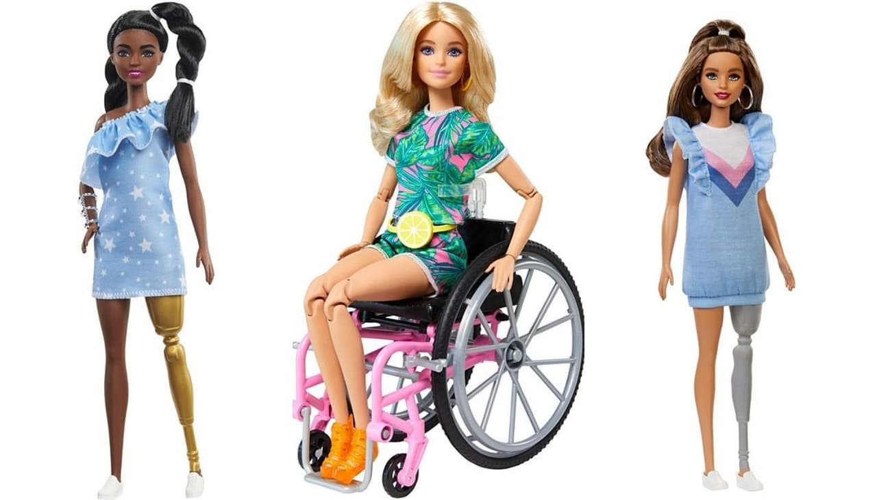 Otro logro importante de representación en la colección Barbie® Fashionistas™ fue el lanzamiento de 2019 que incluyó a muñecas con capacidades diferentes. La colección incluyó Barbies en silla de ruedas y con una pierna prostética.