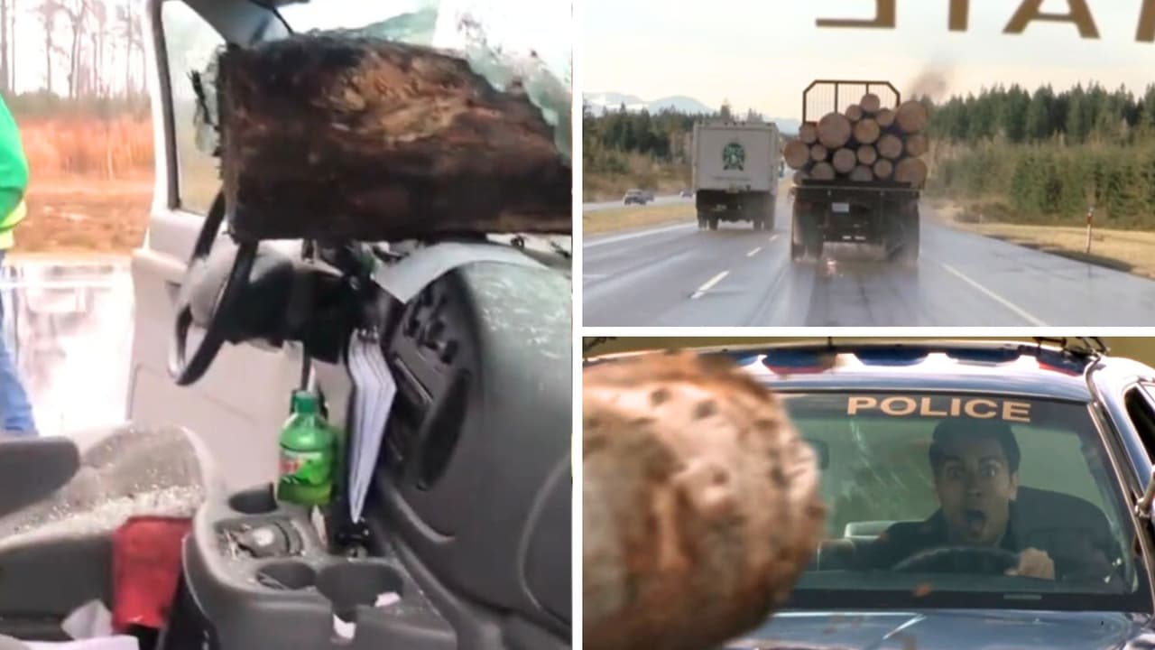 Según un video publicado el pasado 22 de abril, mientras viajaba por una carretera, aparentemente en Rusia, un tronco gigante se desprendió del camión que lo transportaba y quedó incrustado en el interior del automóvil, a centímetros de su asiento.