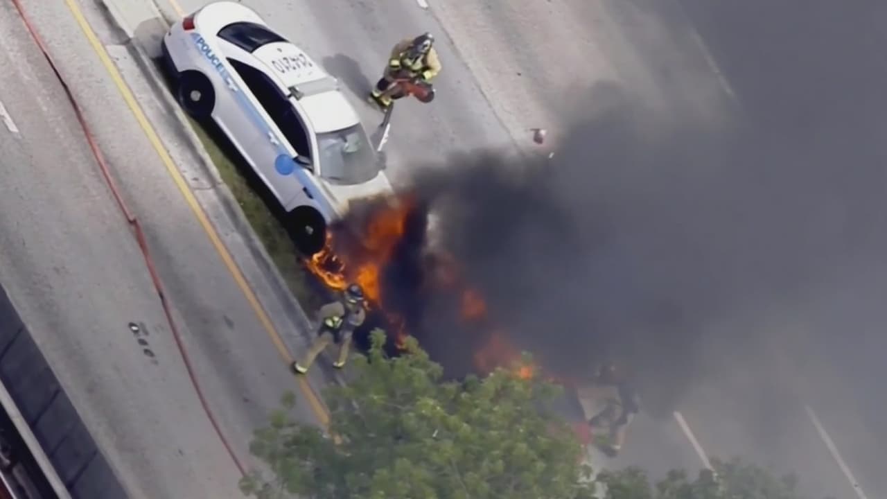 Envueltos en llamas, así terminaron dos vehículos tras una persecución policial