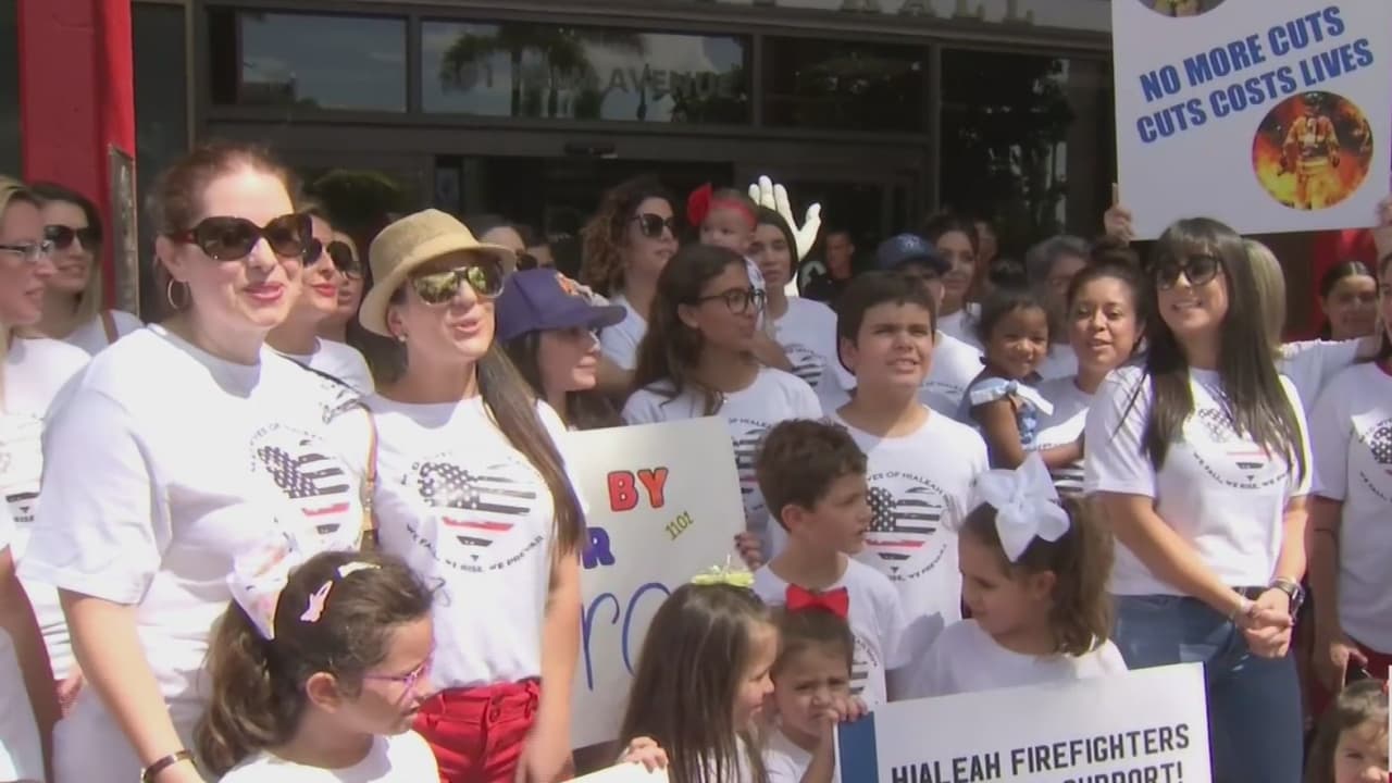Esposas de los bomberos de Hialeah protestan por recortes a los salarios y pensiones de los uniformados