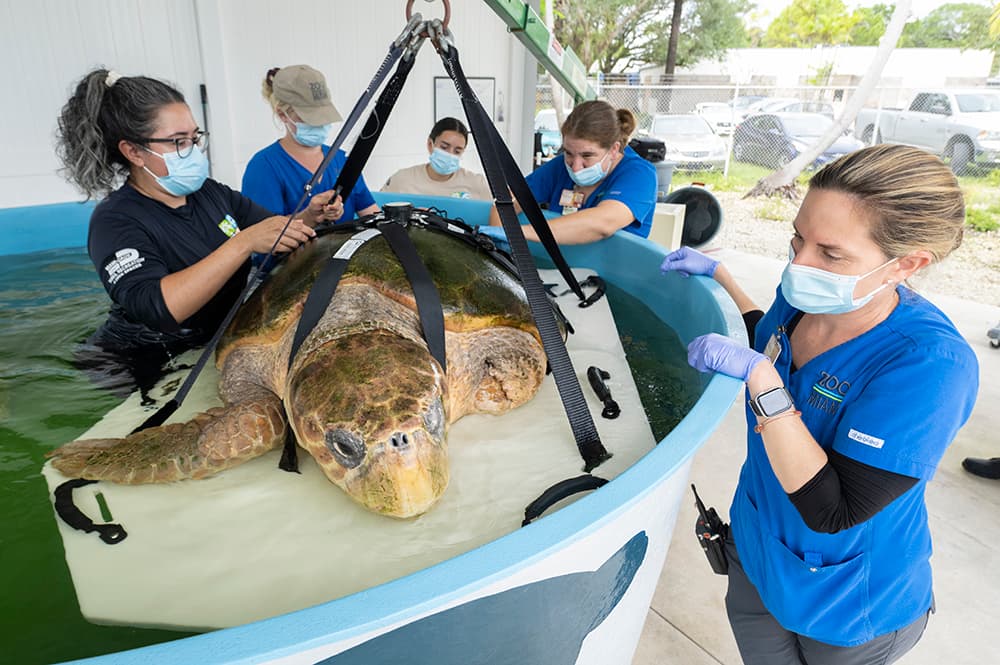 Esta tortuga marina sobrevive al ataque de un tiburón y continuará su rehabilitación en Juno Beach