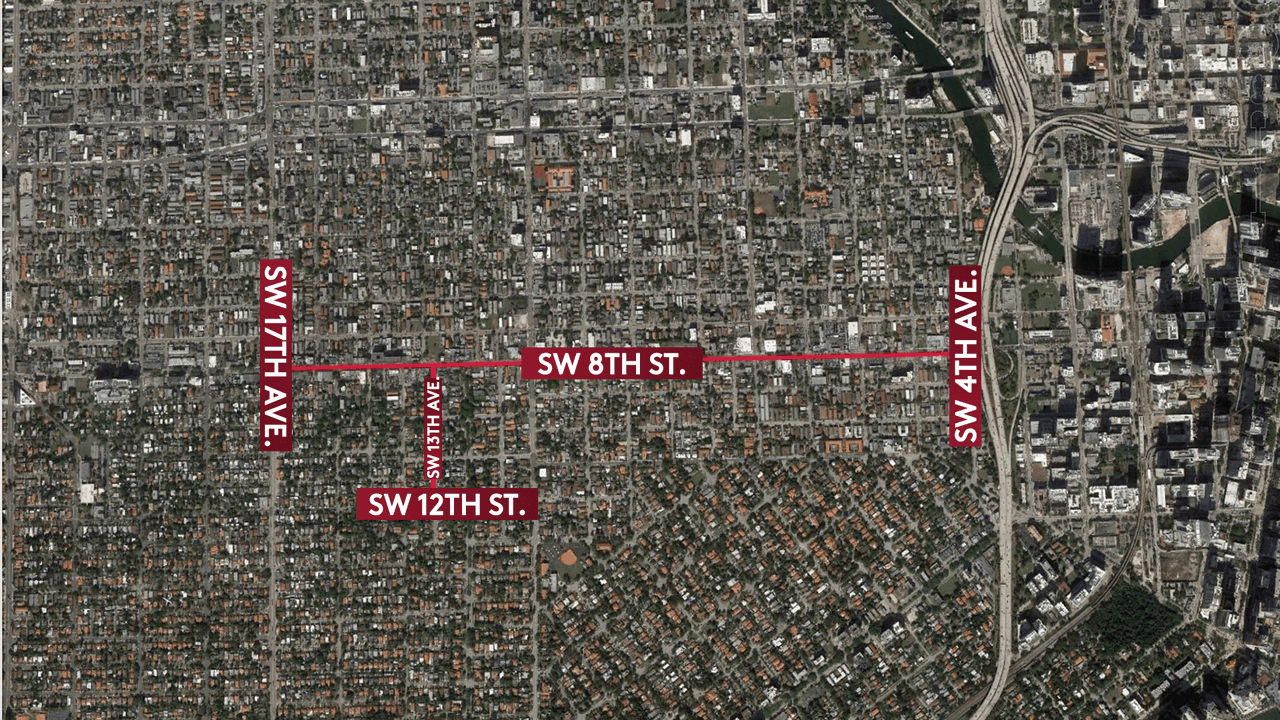 - El suroeste de la calle 8, entre la la 4ta avenida y la 17 avenida.