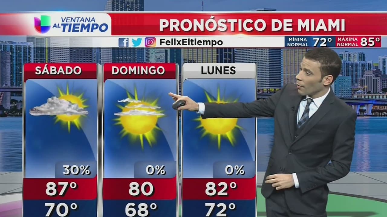 Se pronostica que para este viernes las temperaturas alcancen los 81 grados y las sensaciones térmicas superen los 90 grados Fahrenheit en Miami y sus alrededores. Sin embargo, se esperan algunas lluvias durante el sábado y el domingo.