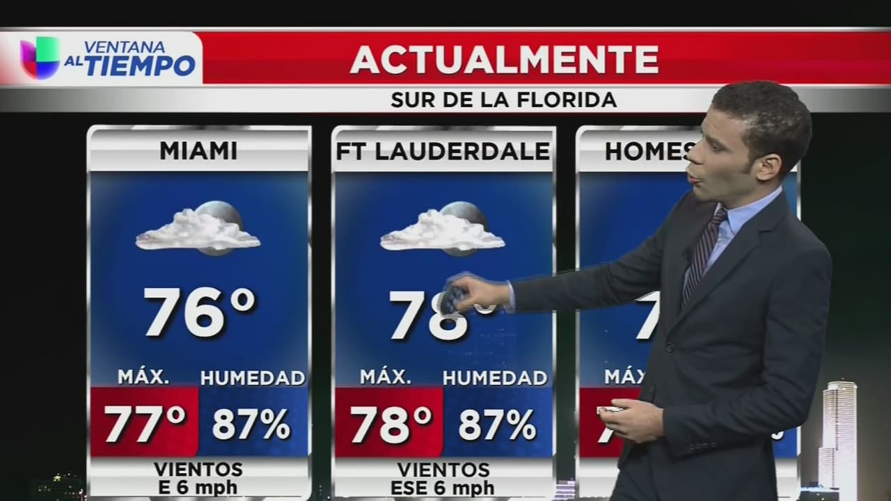 Se esperan cielos parcialmente nublados, chubascos y que las temperaturas alcancen los 85 grados Fahrenheit en Miami y sus alrededores.