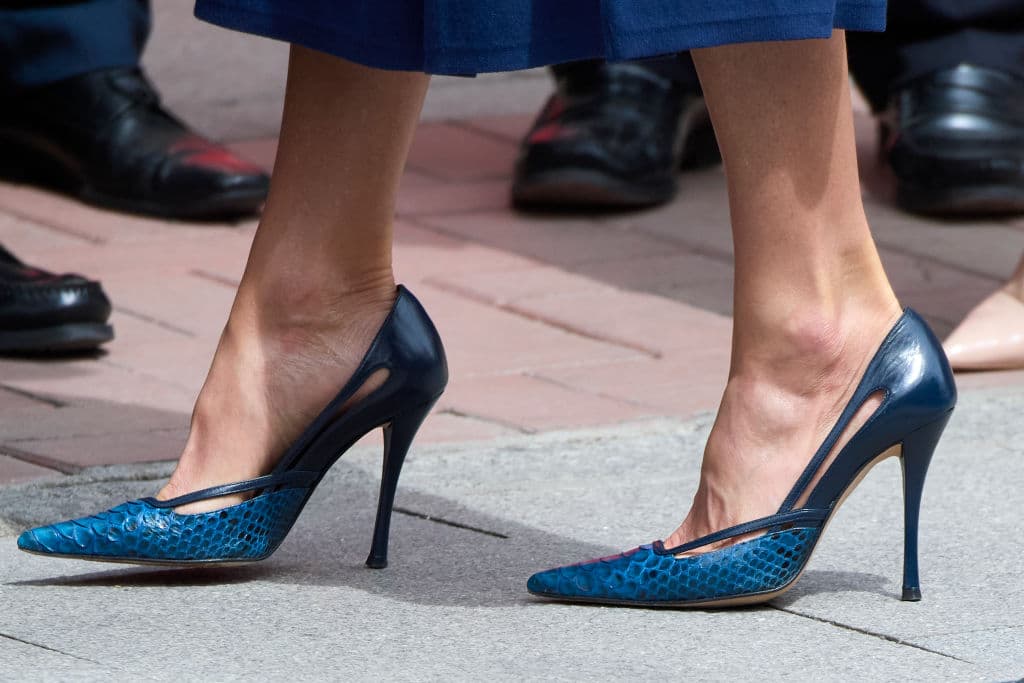 Letizia ha presumido diferentes estampados de cheeta (con manchitas) o de serpiente en sus prendas y recientemente impactó con un diseño de este estilo en unos increíbles y muy modernos zapatos de tacón.