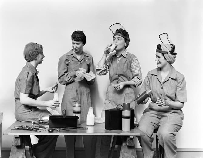 En la Primera Guerra Mundial, comenzaron a tomar el puesto de los hombres en la fuerza laboral, usando uniformes similares a ellos.