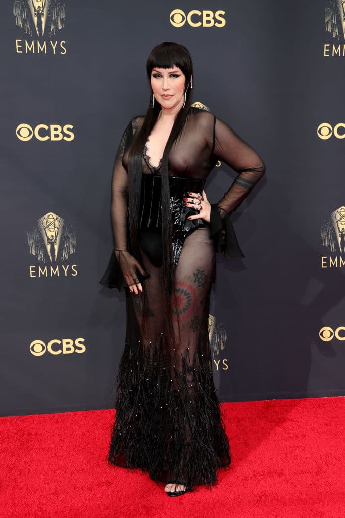 La productora de Transparent y Pose, optó por lucir un enterizo transparente que no dejó nada a la imaginación. Sus únicas prendas debajo de la reveladora tela fueron una trusa y una cinturilla negras.