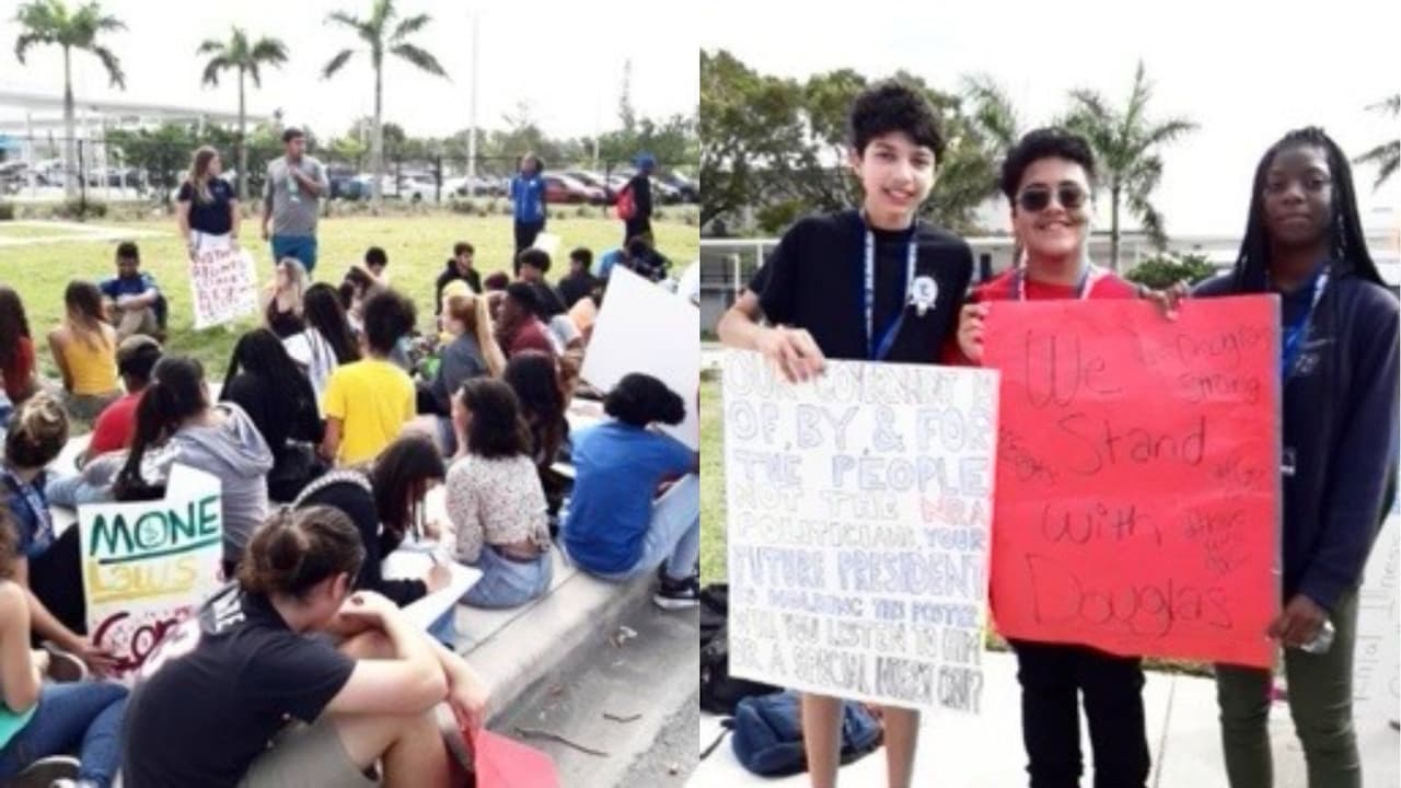 Bajo la consigna "No más armas", decenas de estudiantes del Fort Lauderdale High School salieron este martes a las calles para exigirle al gobierno cambios y seguridad en sus escuelas tras la masacre perpetrada el 14 de febrero en la secundaria Marjory Stoneman Douglas de Parkland.