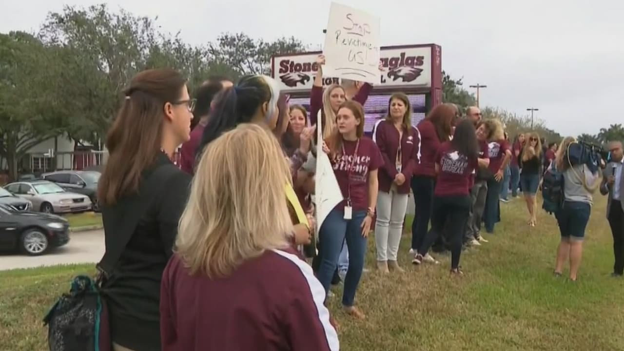 Estudiantes protestas para que se restablezcan cuatro empleados de la escuela Marjory Stoneman Douglas