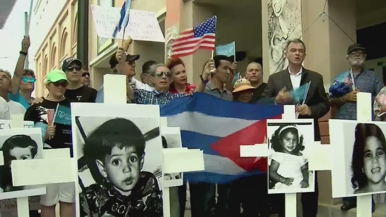 Exiliados cubanos en Miami protestan por la transición de poder en Cuba