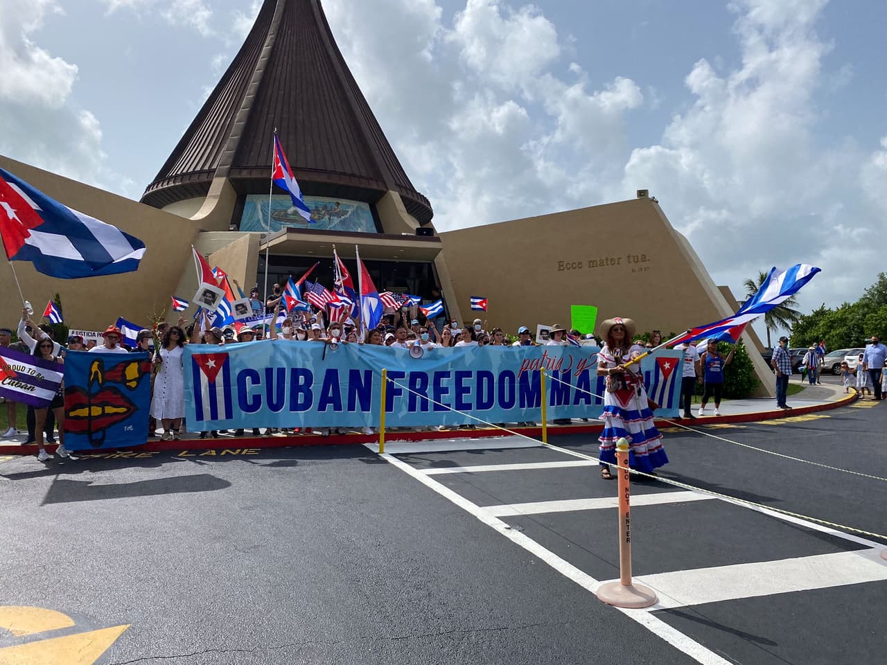 La Ermita de la Caridad del Cobre fue el lugar del encuentro de los cubanos en Miami, este domingo en la mañana. Luego de la misa marcharon hasta el Parque de Dominó en la Pequeña Habana, gritando consignas a favor de la libertad en la isla.