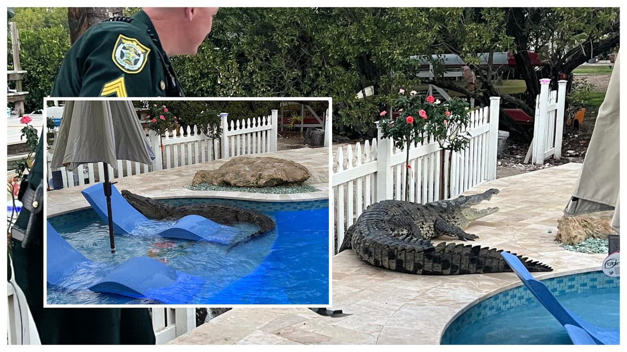 Oficiales del alguacil de Monroe tuvieron que escoltar a un cocodrilo fuera del patio de una residencia de Cayo largo. El invitado no deseado estaba en la piscina de la vivienda tomando el sol.