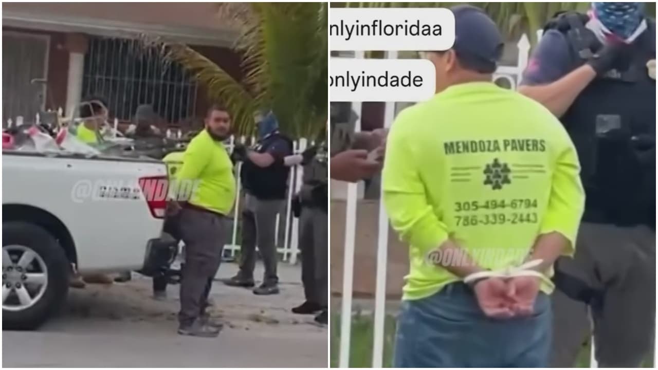 El momento en que los agentes de ICE arrestan a los migrantes, de origen hondureño y nicaragüense, en el noroeste de Miami-Dade, quedó captado en video por vecinos del área y de inmediato se hizo viral en las redes sociales.