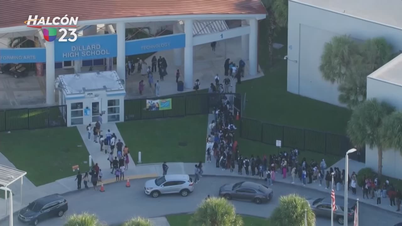 De acuerdo con The Miami Herald, las filas en algunas de las escuelas fueron de más de 45 minutos, y ante la situación en algunas se decidió dejar entrar a los estudiantes sin pasar por los detectores.