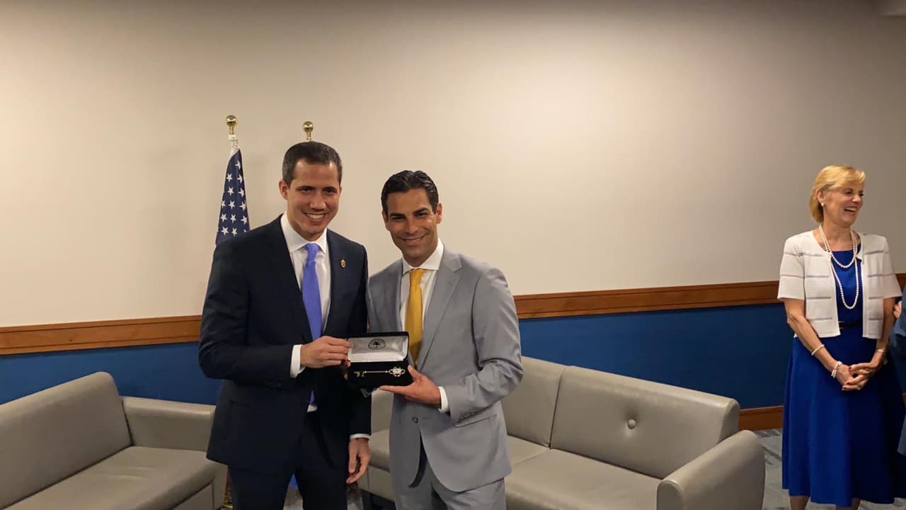 Francis Suárez le entrega las llaves de la ciudad de Miami a Juan Guaidó