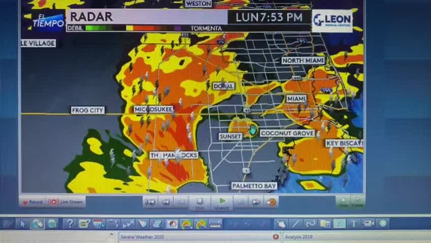 El área de Miami-Dade y Broward está siendo afectada con vientos fuertes en ráfagas de 45 millas, descargas eléctricas y lluvias torrenciales e intensas. Cerca de las 9:00 pm mejora el tiempo.