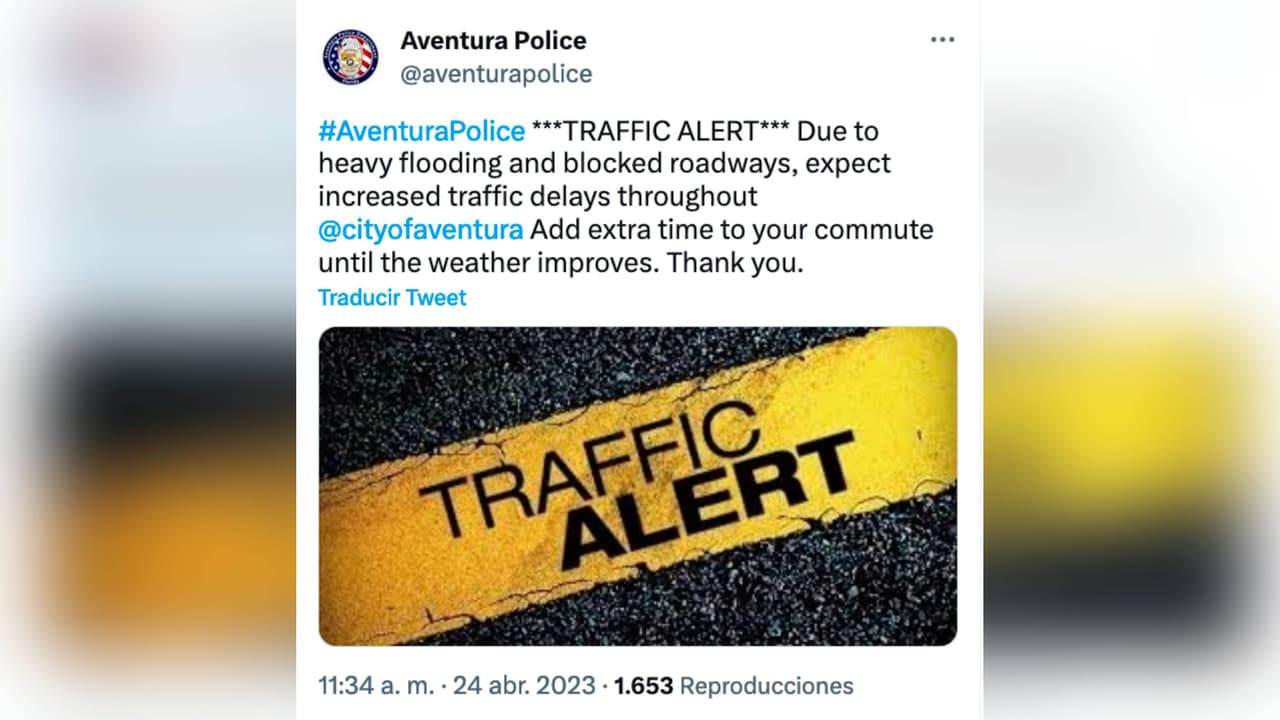 Durante la mañana de este lunes se han emitido varias advertencias por inundaciones, en zonas de Miami-Dade como Miami Lakes y Hialeah. La policía de Aventura advirtió que hay varias calles cerradas debido a las inundaciones.