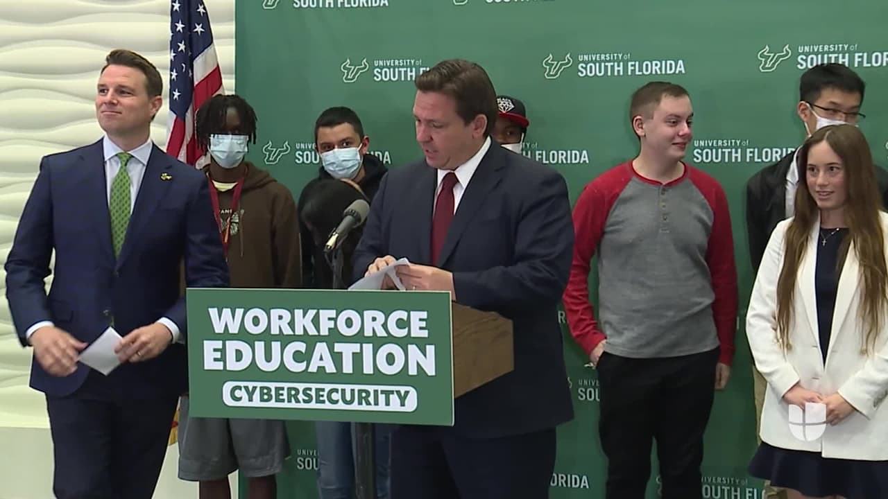Los estudiantes estaban presentes en el evento en el que DeSantis anunció fondos para la educación en ciberseguridad, y hacían parte de siete alumnos de la escuela Middleton High School de Tampa.