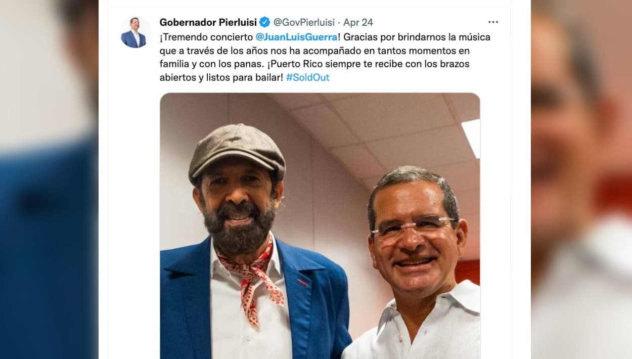 El sábado 23 de abril, el cantautor dominicano Juan Luis Guerra se presentó ante casa llena en el Coliseo de Puerto Rico José Miguel Agrelot. El gobernador de la Isla, Pedro Pierluisi, tuvo un encuentro con el artista de 64 años que este miércoles informó que tiene covid-19.