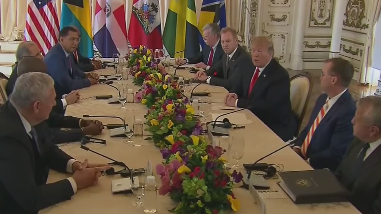 El presidente Donald Trump se reunió con los líderes de Jamaica, las Bahamas, Haití, República Dominicana y Santa Lucia, que están a favor de una transición democrática en Venezuela bajo la dirección de Juan Guaidó. Además, se anunciaron sanciones contra una entidad bancaria en Venezuela. Todas estas medidas ocurren un día después de que el jefe de despacho de Guaidó fuera detenido por el servicio de inteligencia de Nicolás Maduro en su casa en Caracas.