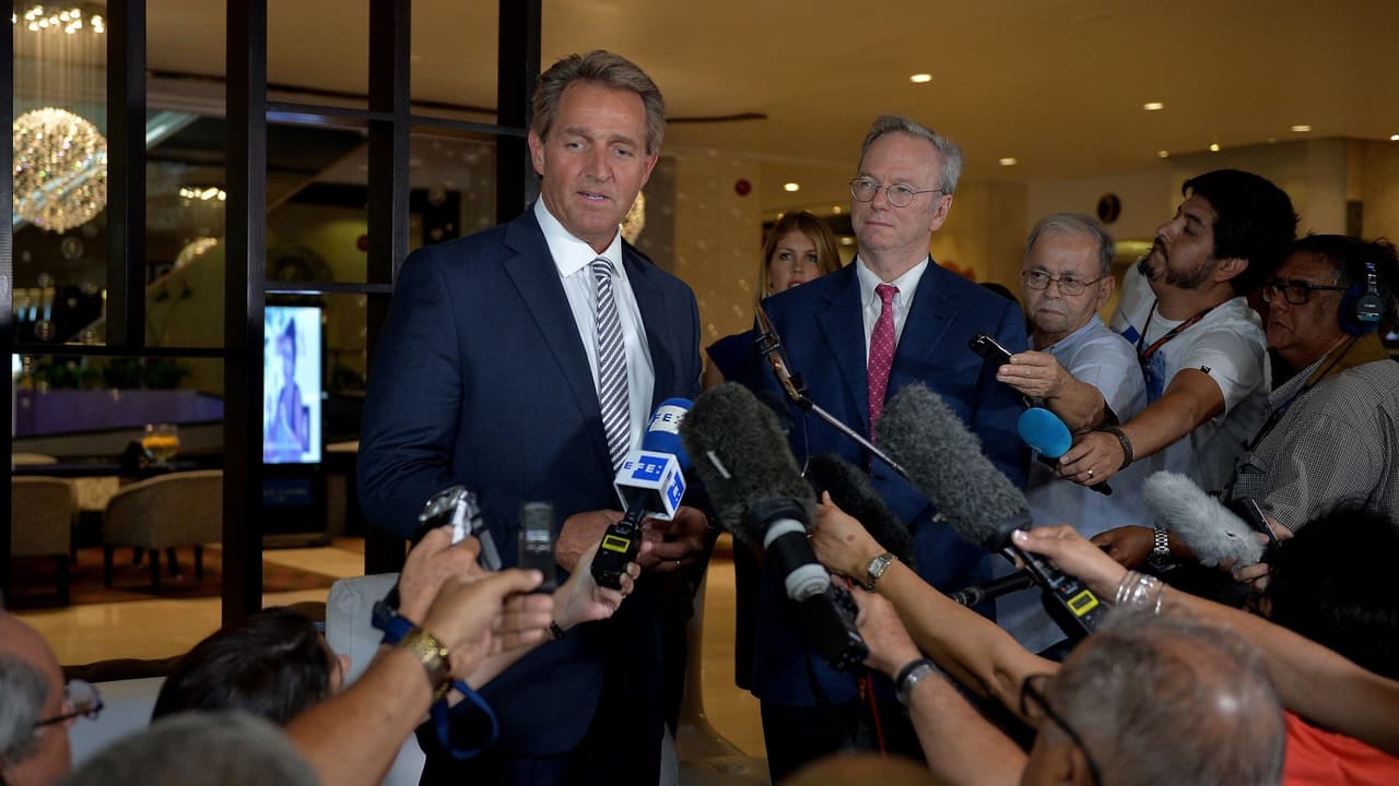 El expresidente ejecutivo de la compañía Eric Schmidt y el senador estadounidense Jeff Flake se reunieron con el mandatario cubano Miguel Díaz-Canel para conversar sobre cómo la empresa puede ayudar a Cuba a conectarse a los cables submarinos de fibra óptica que pasan relativamente cerca de la isla.