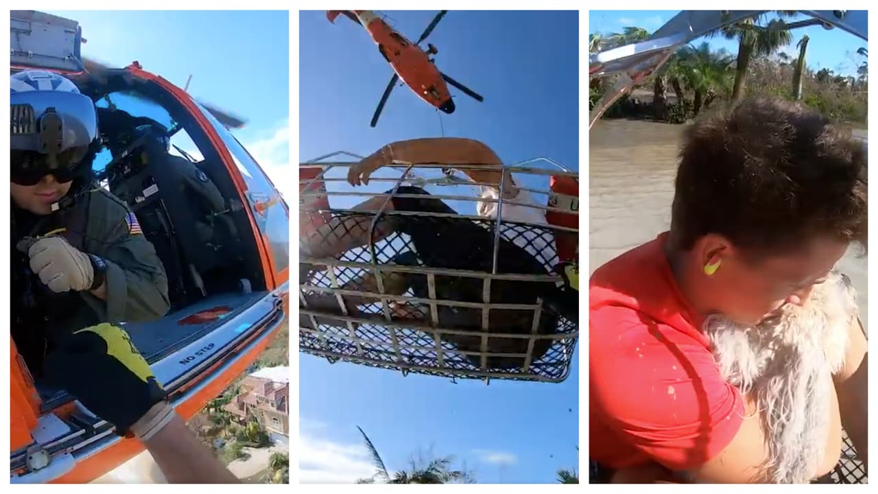 Las dos personas y el perro habían quedado atrapadas en la Isla Sanibel, que recibió el embate directo de los vientos de 140 mph del huracán Ian. Lograron que un helicóptero de la Guardia Costera los viera, y de inmediato acudieran en su ayuda.