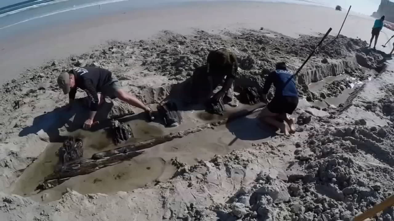 No saben si es fue naufragio, pero el hallazgo de unos objetos de casi 100 pies de largo, ha sido un misterio que intentan resolver en Florida. Un grupo de arqueólogos están en una playa de Daytona Beach, excavando desde el pasado lunes.