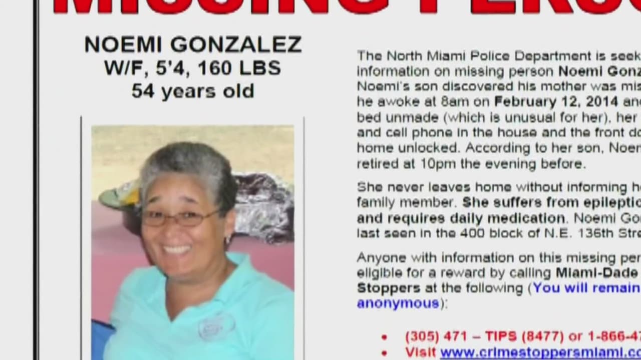 La familia de Noemí González, de 54 años, sigue publicando carteles con una recompensa de 20,000 dólares para quien tenga información sobre este caso.