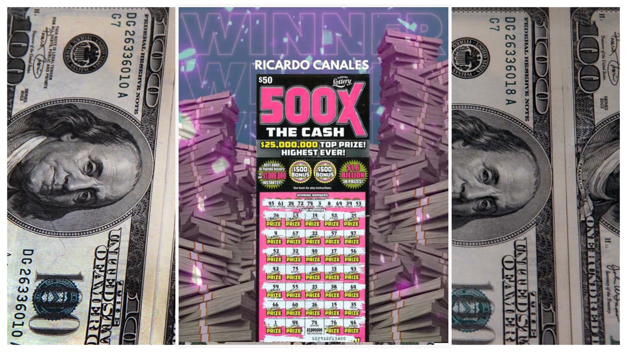 La Lotería de Florida informó que Ricardo Canales ganó con el raspadito 500X THE CASH. El hombre de 55 años compró su boleto ganador en un Kwik Stop de Fort Lauderdale. Reclamó su millonario premio en una sola suma.