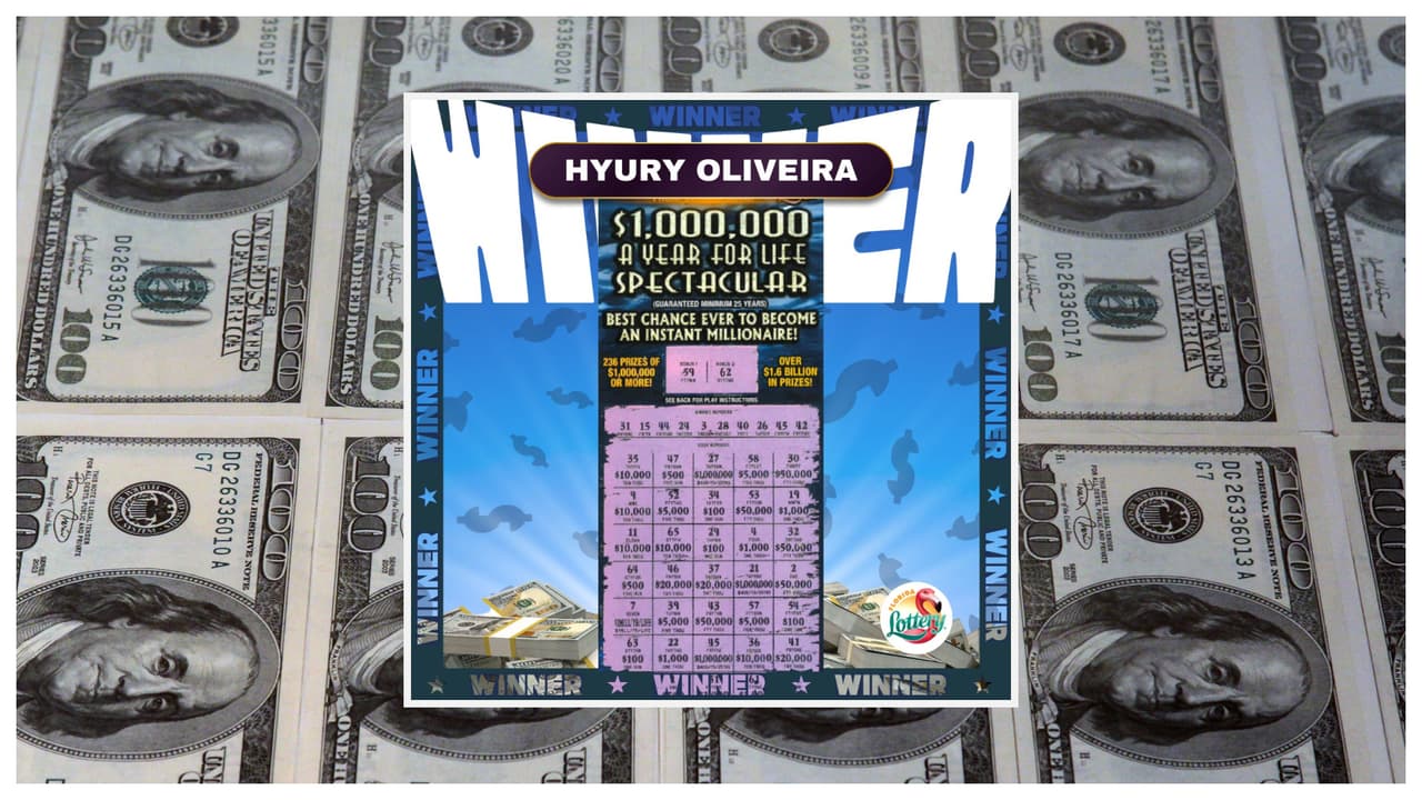 La Lotería de Florida informó que Hyury Oliveira ganó con el raspadito $1,000,000 A YEAR SPECTACULAR. El hombre compró su boleto en un supermercado de Broward y reclamó su millonario premio en una sola suma.