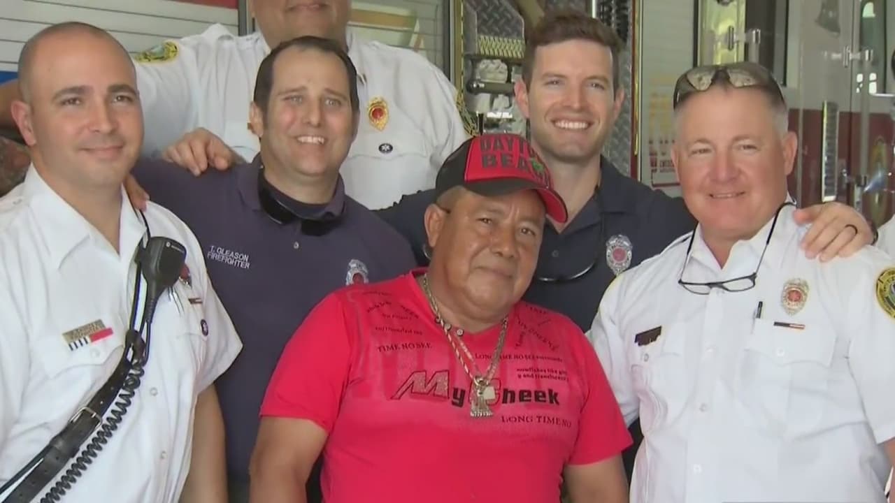 Hombre que quedó colgando en el noveno piso del Hotel Grand Bay se reencontró con sus rescatistas en Key Biscayne