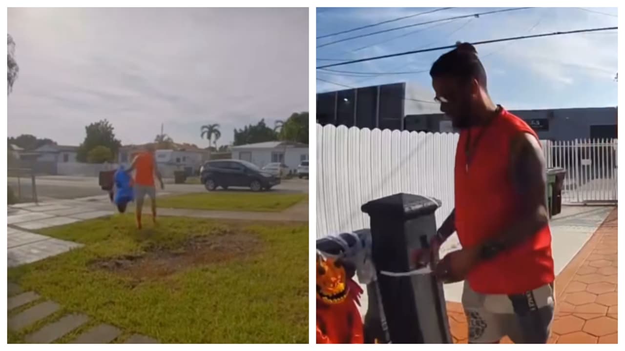 El hombre ha quedado captado en video por cámaras de seguridad de casas, aparentemente en su mayoría de Hialeah. No solo se llevó los adornos de Halloween, sino que dejó mensajes religiosos en las viviendas.
