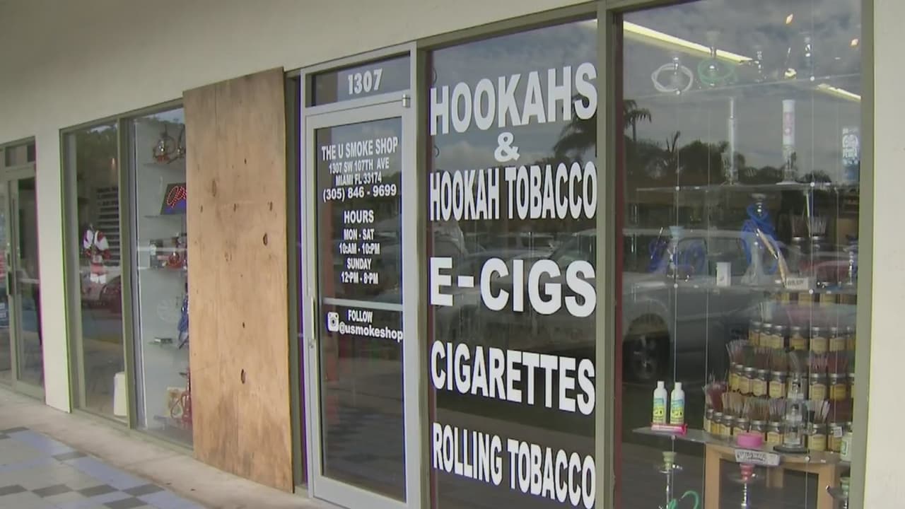 Hombre rompió con una patineta el vidrio de tienda de cigarrillos electrónicos para robar artículos