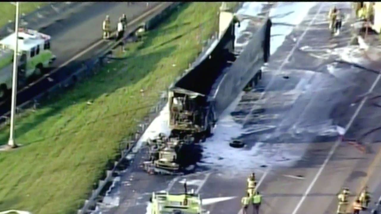 El tránsito de vehículos en la avenida Turnpike, a la altura de Kendall Drive, estuvo afectado por varias horas luego de que se incendiara un camión.