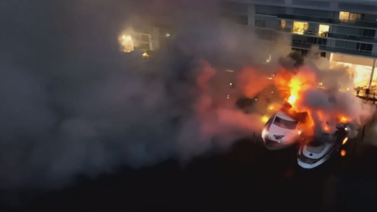 Video Varios botes se incendian en una marina de Sunny Isles Beach